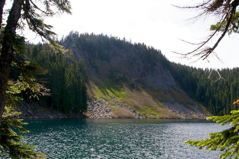Lake Sahale Tyee was very special. Given its altitude, the weather changed every 30 minutes or so. As the giant trees are around you in a shape similar to an auditorium, with you sitting as the lone spectator on a little grass outcrop, it felt like nature was treating me to a number of shows. I sat here literally three hours straight, first admiring the sun moving shadows through the forest, then the fog being blown left and right, and finally the wind sweeping waves over the small lake.