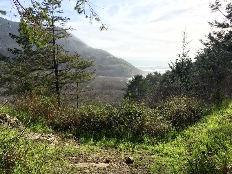 It only took me about six miles and 1500 feet of climbing to realize that I wasn’t on the Lost Coast trail, but on Hotel Gulch trail, which runs parallel to it and does go higher onto the ridges. Sadly, it doesn’t have any campgrounds until Wheeler, which was farther than I had planned to go that day.