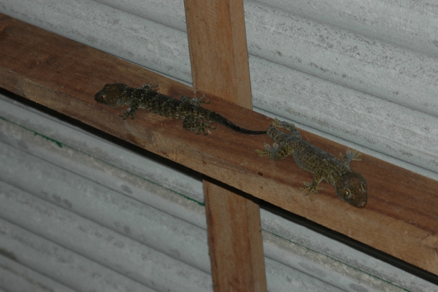 I rented a small bungalow for 100 baht a night. In the end, I did spend up sharing it with two non-paying palls, which I baptized JJ and Liam, after my Australian housemates. You can see them pictured above. They made for great conversation.