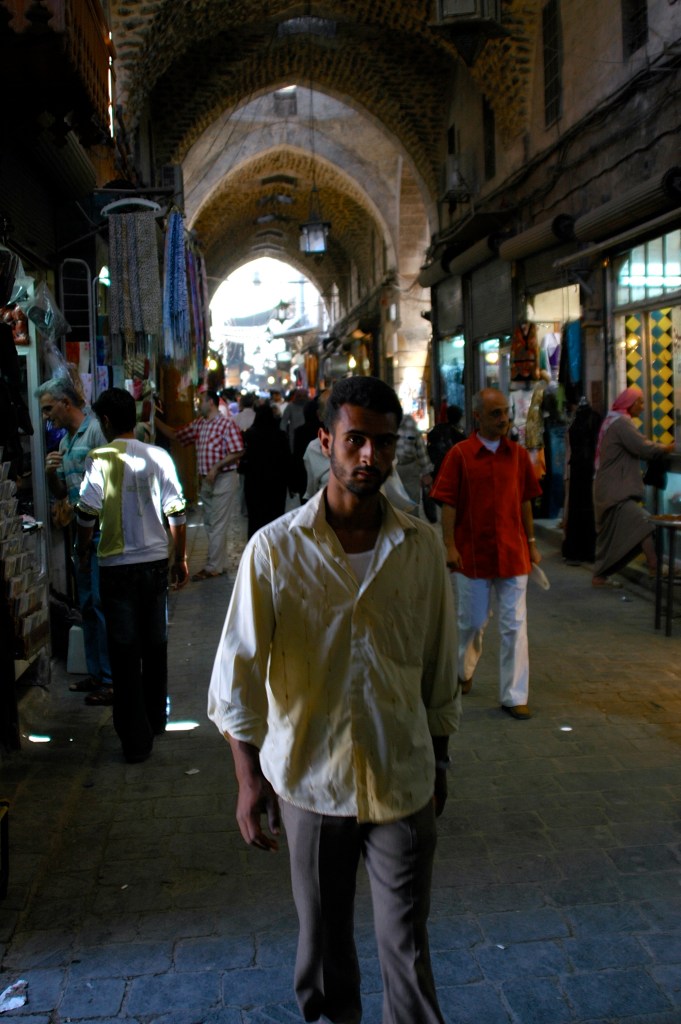 Heading towards the al-Medina Souq in Aleppo. The gentleman on the right was one of perhaps three people across eight weeks that didn’t like his shop being photographed. We talked about it afterwards, and he no longer minded. One of the things I noticed strolling through the souq was the incredible ethnic variety of people in Syria. There are many reasons for this, but one of the reasons you sometimes find blonde, blue-eyed Syrians is the mixing of races that did happen between the crusaders, and some of the locals.