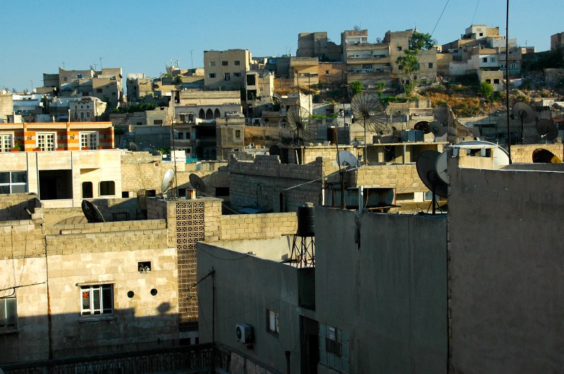 A view from the rooftop of my inn in Hama. I was staying here with Becky, my newfound Scottish friend, and the innkeeper took his belief that we were married a little bit far… In the evening, we had dinner with a Journalist who was studying three small villages, Jubb’adin, Al-Sarkha and Ma’loula, where people still speak Aramaic – the language of Jesus. Earlier, we had checked into a nice inn, and had gotten two separate beds in a dorm room. When we returned from the dinner, we found the innkeeper had moved everyone off the roof, and into various rooms. On the rooftop, there was a single soft, lush mattress, a table with a romantic candle, plushy pillows, and some sweets. It was a hard night’s rest on the stone floor, for me.