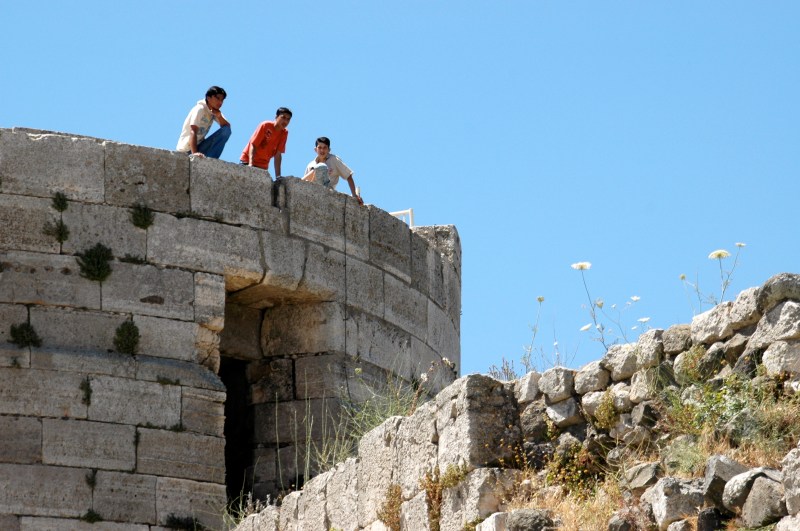 A lone traveller from the UK, reading up on the history of the ancient Citadel, while taking a break from his walk. There were really only a few tourists in Aleppo the four days I was there, and most had travelled in by train.