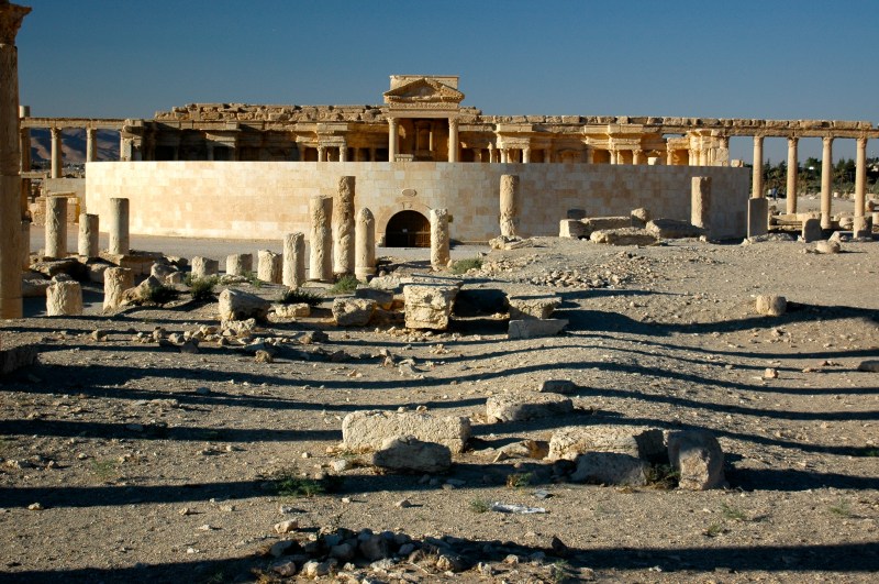 The Roman Theatre in Palmyra, which dates back to the second century. It was rebuilt and restored in the 1950’s and in current days was used as the main event hall for Palmyra. In 2015, when ISIS took control of Palmyra, it became the site of a mass execution by teenage members of the movement.