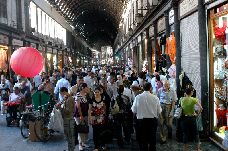 The Al-Madina Souq in Aleppo, one of the jewels of the silk road, yet unfortunately much of it was destroyed in fighting between the Syrian government and opposition forces. Prior to this damage, it was purportedly the longest covered market in the world.
