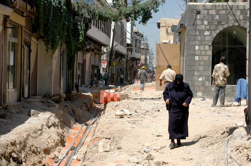 Damascus, in particular the old city, claims to be the oldest inhabited city in the world. While that claim is hotly debated, there was definitely a presence there of people dating back to 2 millennia BC. The city is still changing in many ways, as is seen here by the introduction of communications cables.