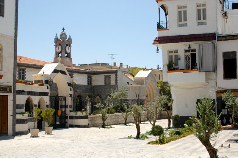 The Melkite Greek Catholic Church in Damascus. The Melkite Church is headquartered here, in Damascus, but operates across the Mediterranean, and has about 1.6 million members. In 2013, their patriarch, Gregory III Laham, called out against foreign intervention in the country, instead appealing to countries to stop importing weapons.
