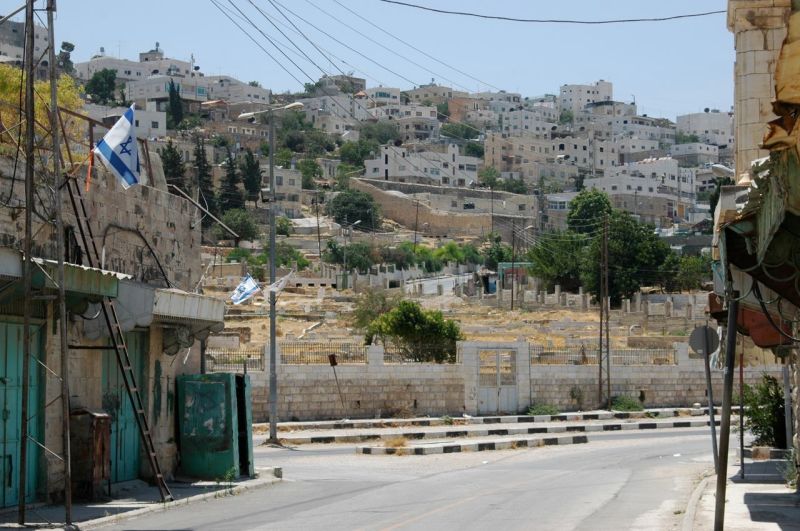 Israel. The Israeli flag on a house on a settler road, right in the middle of Palestinian Authority controlled area. The houses in the back are Palestinian-owned, the road is protected by Israeli Defence Forces. Just an illustration of the on-the-ground difficulties of the peace accords.
